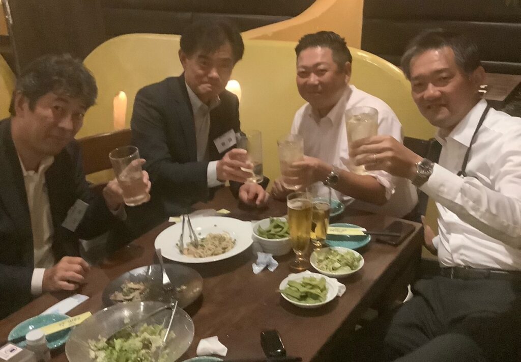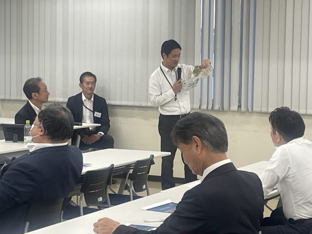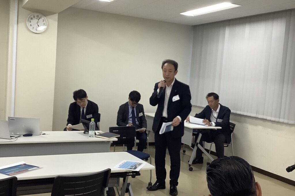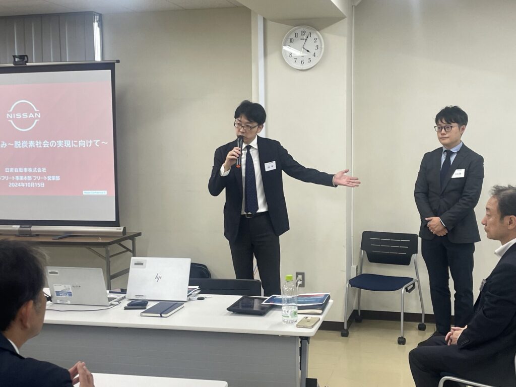 10月15日、日産自動車グローバル本社日本フリート事業部より山村さん・上土井さんご両名のプレゼンターをお迎えし、「日産自動車の取組~脱炭素社会の実現に向けて」と題した企業PRを開催しました。司会は三菱オートリースの関根さんです。出席者27名と予想に反しいつもの企業PRより多く、本テーマに対する会員の関心が高いことを感じた次第です。発表資料は企業秘密の部分が多く、記録することはできなかったのですが、少しブレーキがかかったようにも見えるEV化はカーボンニュートラル実現のためには避けて通れない道であること。全固体電池(電池は正極と負極の異なる二つの活物質と、その両方に接している電解質から構成されている。この電解質を液体から固体にして、すべて固体で構成した電池が「全固体電池」であり安全性・寿命・出力など多くの点で、電解液を用いた電池を上回る性能を持つ・・がまだ開発途上)の開発がその第一ステップとであることがよく理解できました。終了後、新しくご入会いただいたワタベ塗工の花島 和宏さんから自己紹介をいただきました。新しい仲間が増えることは嬉しいものですね!!交流会は二番街にある「サブティぺパーズ」で交流会開催、福井電機の土居さんの司会でいつもどおり盛り上がり、おひらきとなりました。