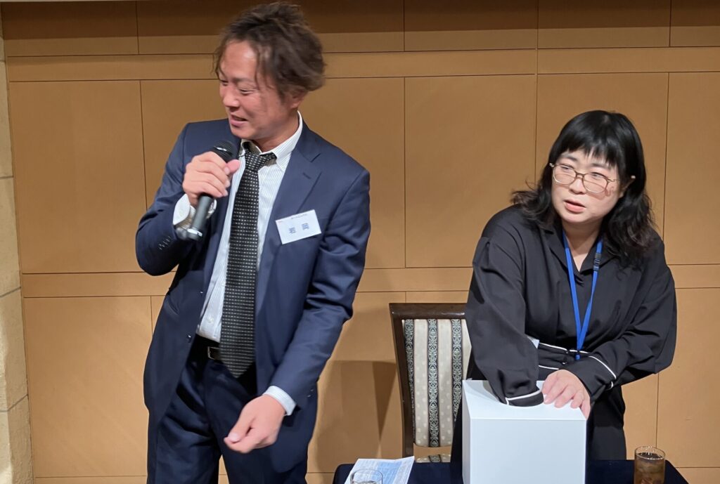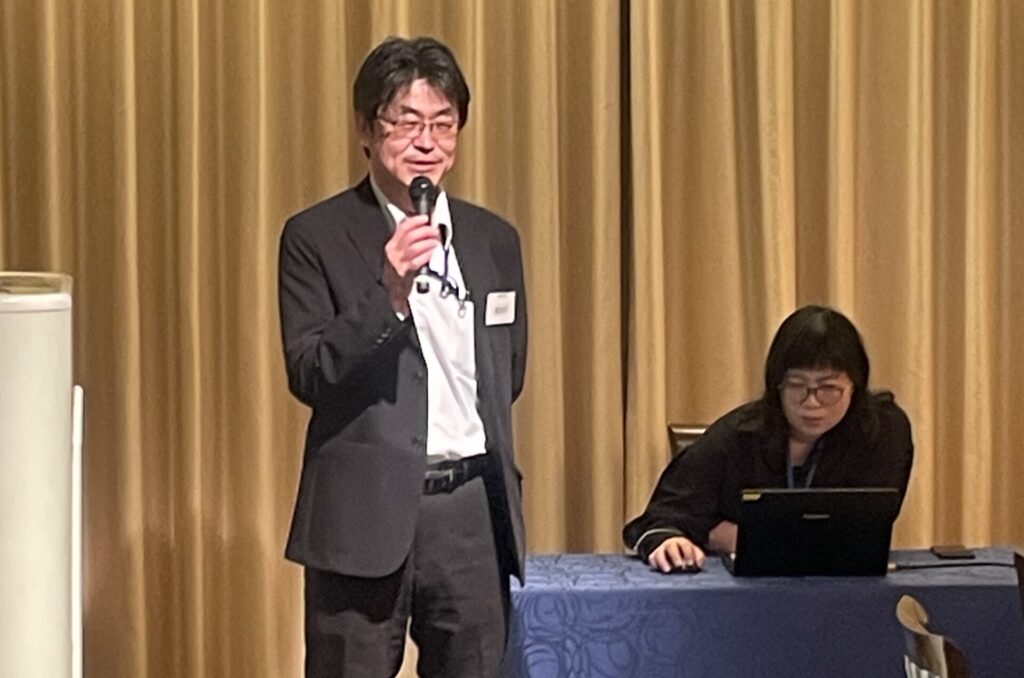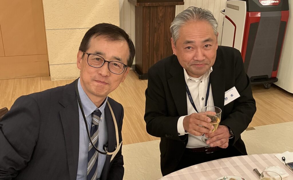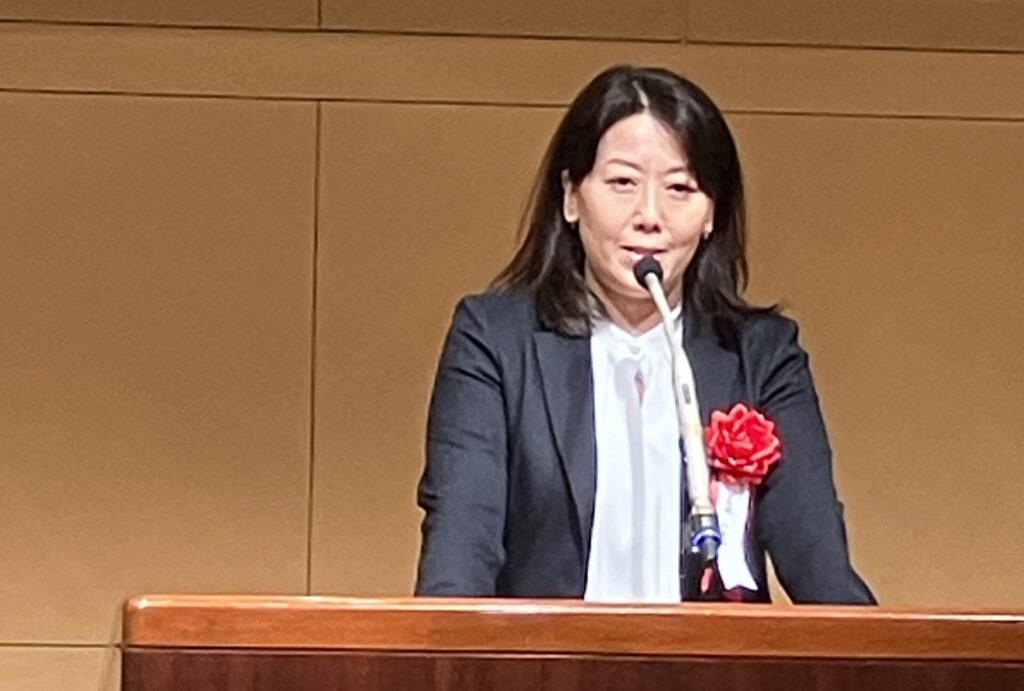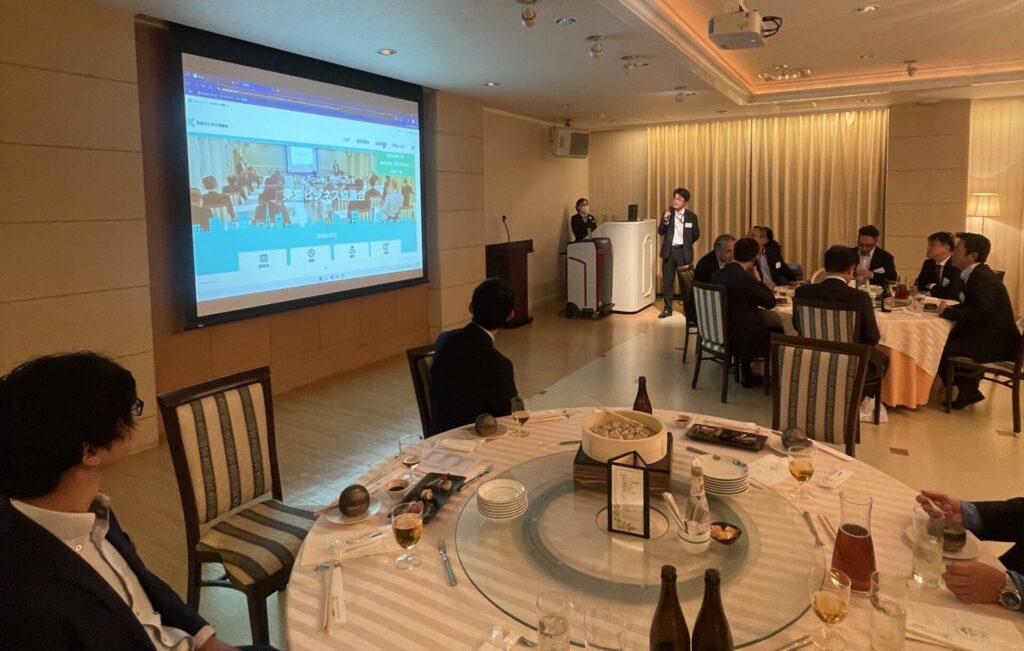 引続いての式典は、11月のチャリティゴルフで集まったチャリティ金の贈呈式です。柏市長と流山市長にご登壇いただき、それぞれの市の近況・ビジョンなどを交えご挨拶をいただきました。そしていよいよ東葛テクノプラザの大竹所長のご発声による乾杯で交流会が始まりました。